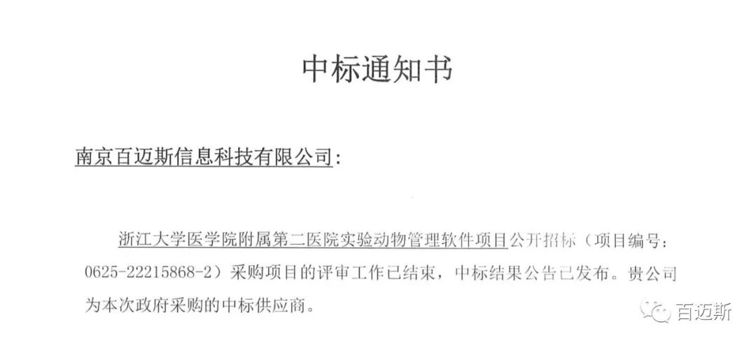 秋天的第一份喜讯:百迈斯成功中标浙江大学医学院附属第二医院实验动物管理软件项目