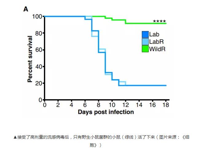 当暴露于高剂量的流感病毒时,92%的具有野生微生物菌群的实验室小鼠存活了下来,而对照组中只有 17%的实验室小鼠存活。在另一组实验中,具有野生微生物菌群的实验室小鼠在被诱导结肠直肠肿瘤后有更好的康复结果,而对照小鼠中则产生了更多的肿瘤和更严重的疾病。野生微生物菌群的有益作用与两种模型中的炎症减轻有关。